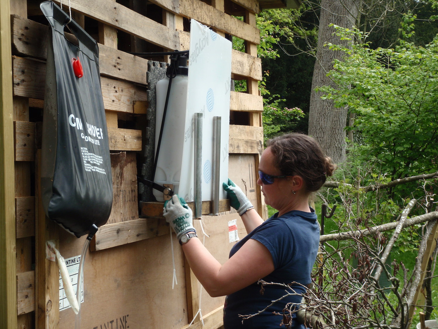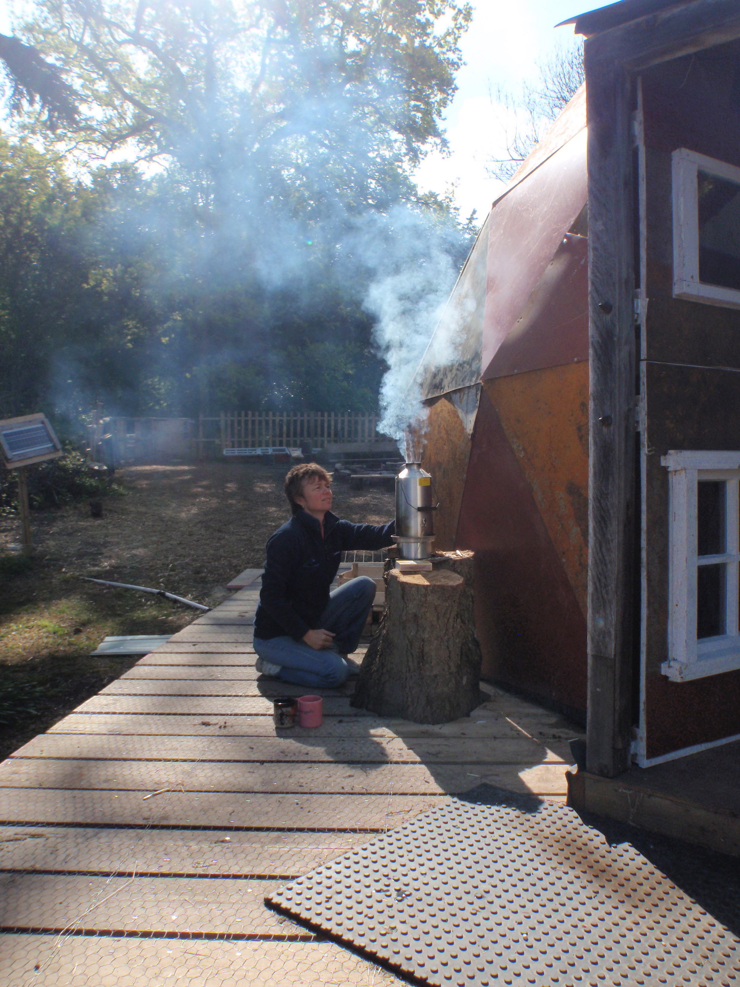 We also discovered the dome itself is quite noisy. I guess as it’s made of wood and metal they must warm up and cool down at different rates so it creaks as it cools down at night and as it warms up in the morning (I know how it feels). There was also a dead twig from the oak tree rubbing on the metal when the wind blew and making a horrible noise, so that was the first job on the first morning to trim that off.