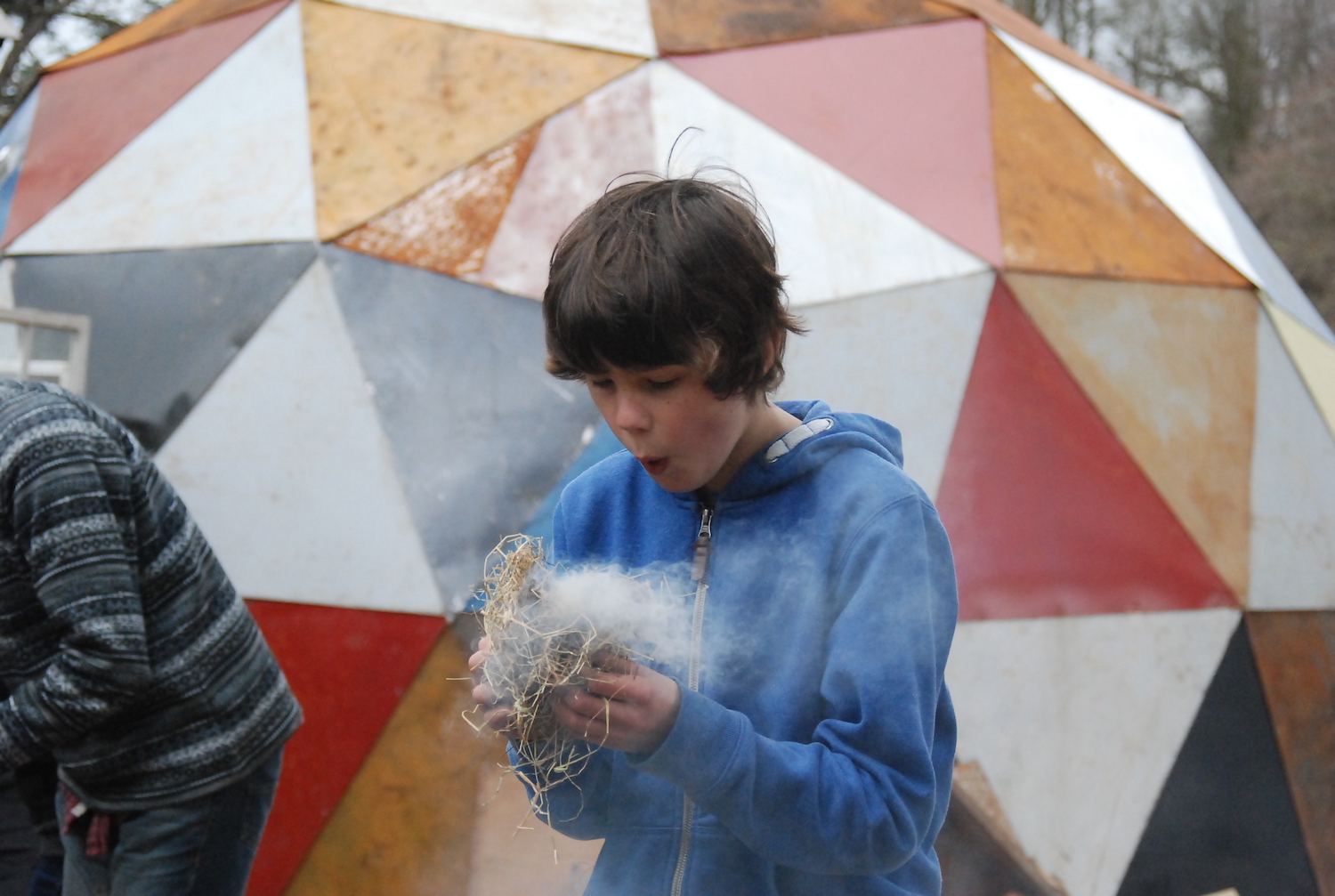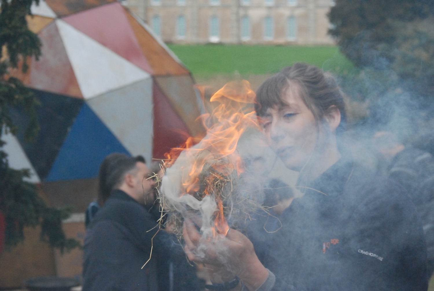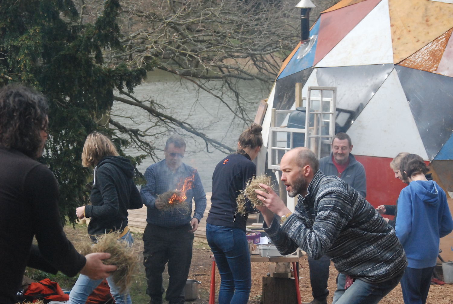 In the morning, we started with the post-industrial stuff – how to build a fire using things you’d find in the streets of Birmingham, Coventry, or gritty Leamington Spa. Wooden stirrers from Costa, copies of the Metro for tinder, fruit crates from Spain and now-pointless bank statements would be good places to start. But how to light it?