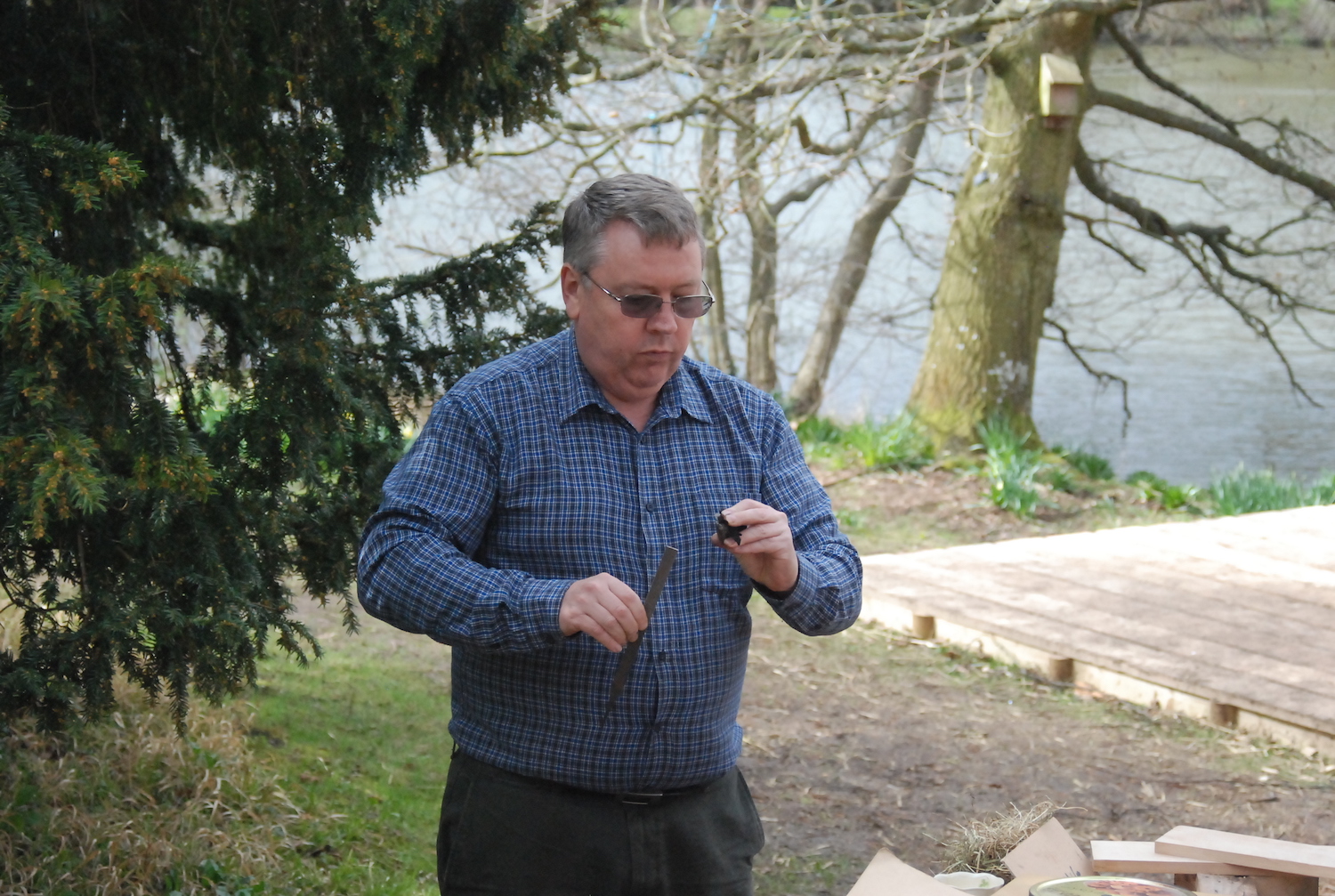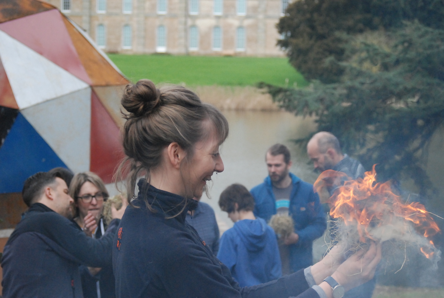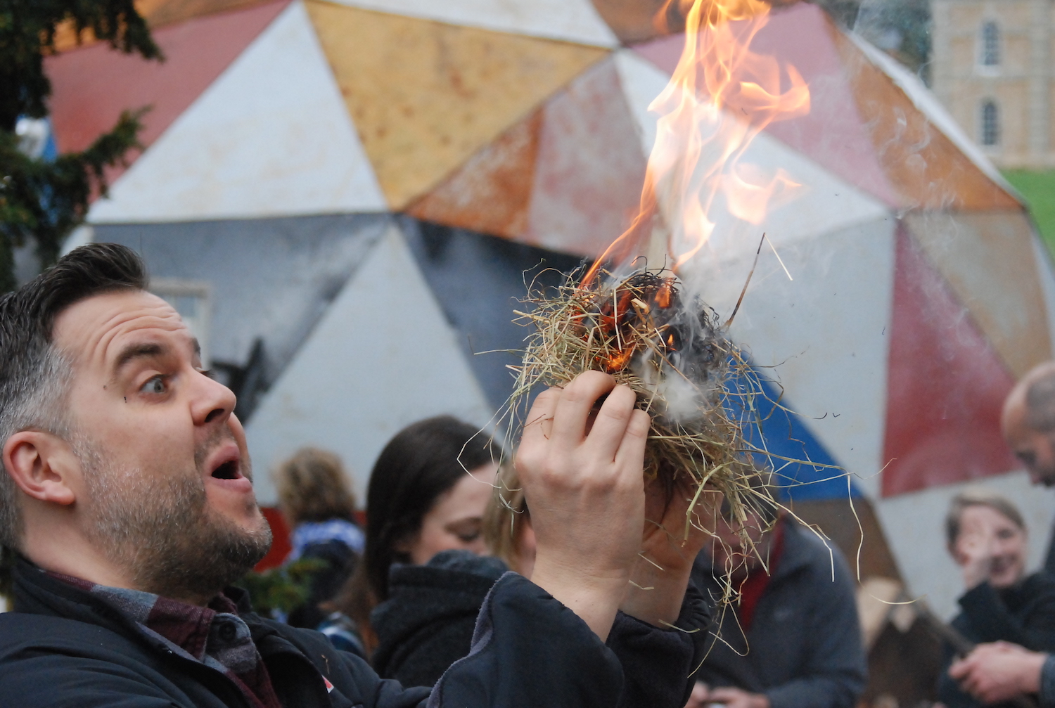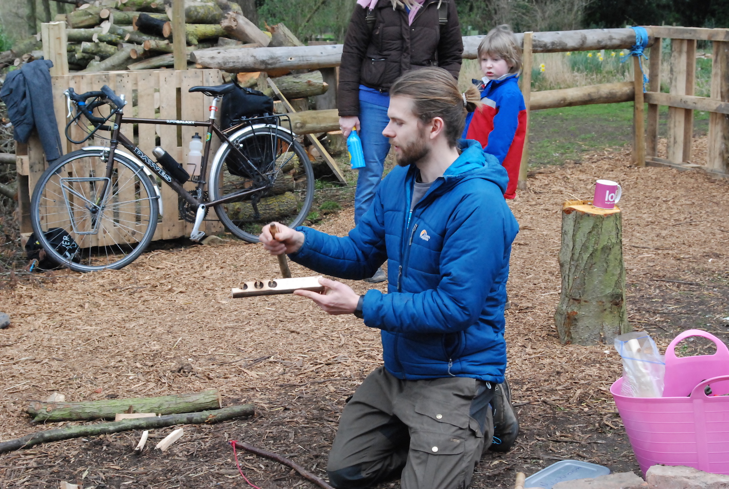 In the morning, we started with the post-industrial stuff – how to build a fire using things you’d find in the streets of Birmingham, Coventry, or gritty Leamington Spa. Wooden stirrers from Costa, copies of the Metro for tinder, fruit crates from Spain and now-pointless bank statements would be good places to start. But how to light it?