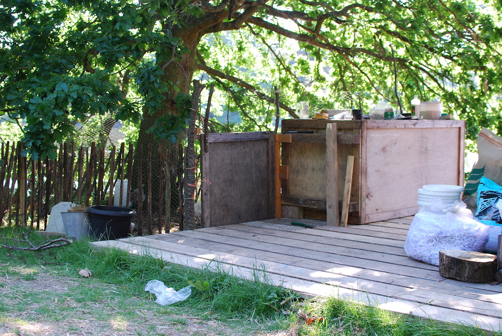 - You don’t have to spend loads of money on a coop – you can build your own. Just make sure it’s off the ground, out of the reach of rats and predators, and has a pole running across on which they’ll line up to sleep at night. Line the coop with leaves, straw or shredded paper from the office recycling. This can go in the compost after.