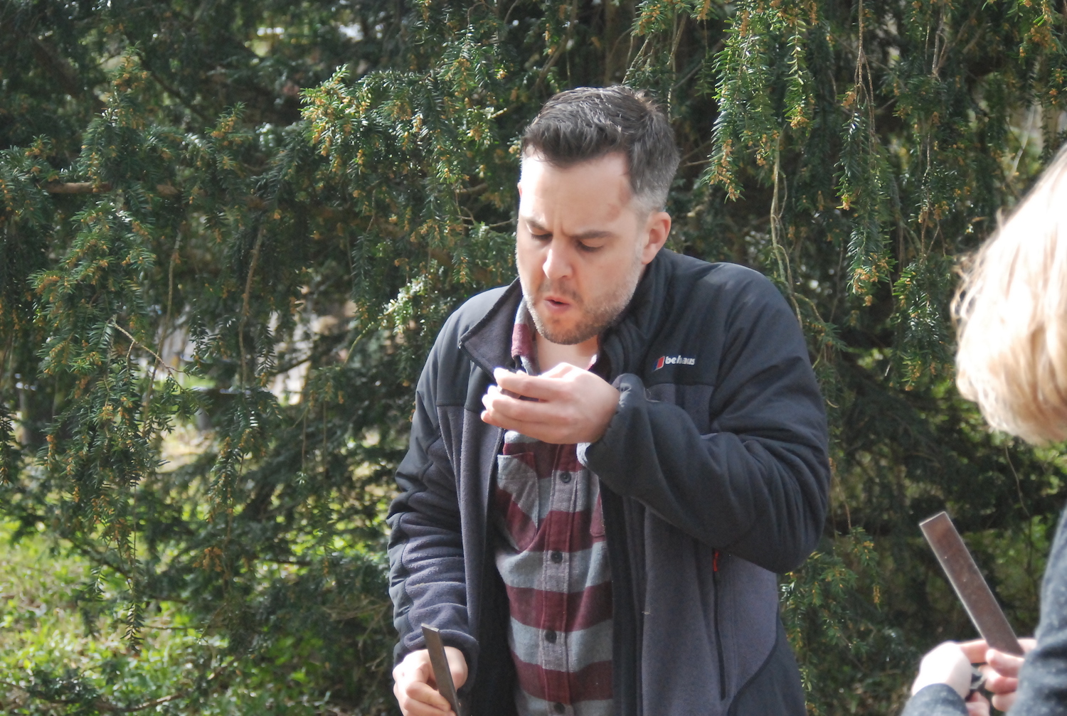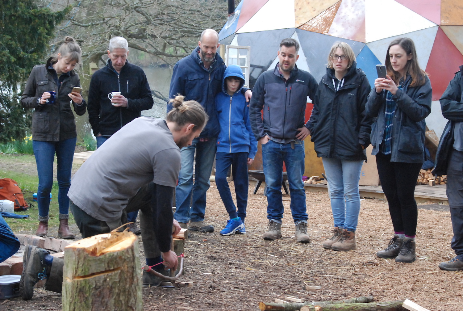 In the morning, we started with the post-industrial stuff – how to build a fire using things you’d find in the streets of Birmingham, Coventry, or gritty Leamington Spa. Wooden stirrers from Costa, copies of the Metro for tinder, fruit crates from Spain and now-pointless bank statements would be good places to start. But how to light it?
